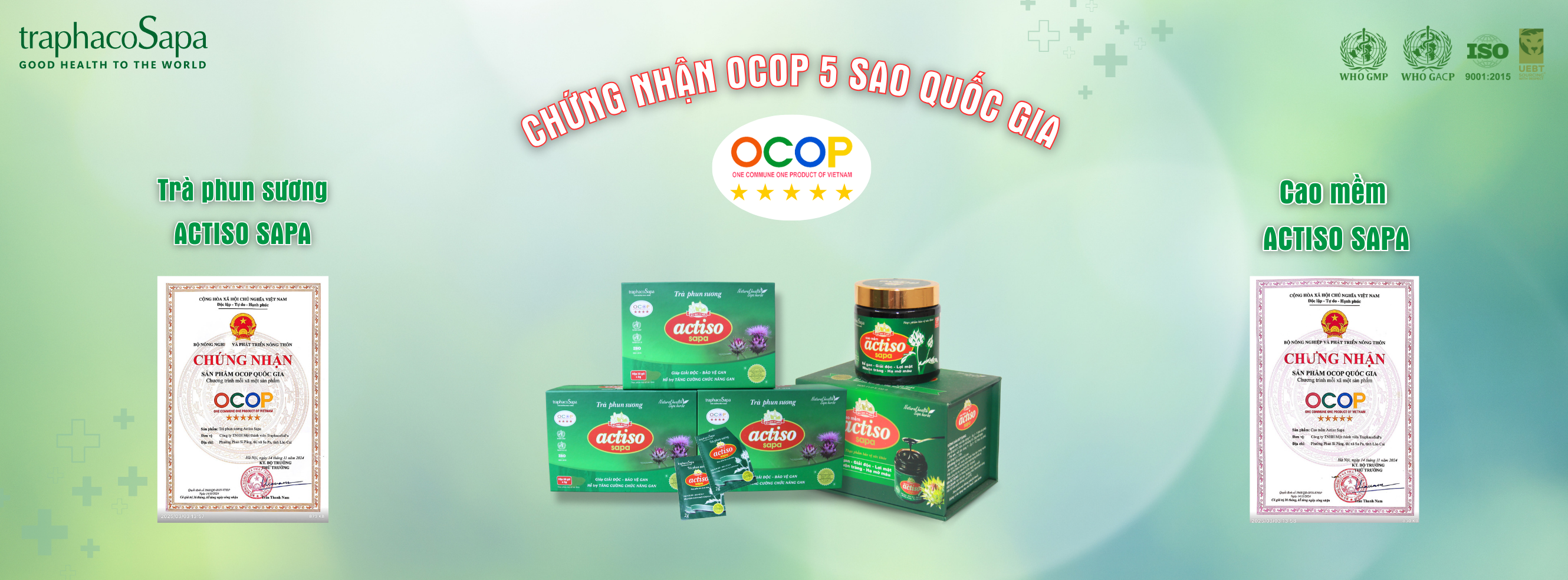 Công ty TraphacoSapa có vùng trồng cây dược liệu đạt tiêu chuẩn GACP- WHO, nhà máy đạt GMP - WHO và tự hào là thành viên của Liên minh toàn cầu thương mại sinh học có đạo đức UEBT - Chia sẻ lợi ích cộng đồng, bảo tồn tích cực nguồn gen cây thuốc. TraphacoSapa vinh dự nhận giải thường ASEAN Business Awards ở hạng mục “Kinh doanh bao trùm” - Kết nối với hơn 300 hộ nông dân là người dân tộc thiểu số tại Sa Pa. Cung cấp cho nông dân giống, dịch vụ tư vấn đào tạo. Thu mua cao hơn 30% giá thị trường, qua đó tạo ra giá trị cho người thu nhập thấp một cách bền vững.